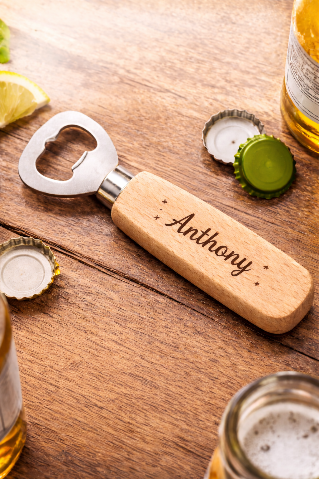 Décapsuleur personnalisé en bois – Manche gravé avec votre texte